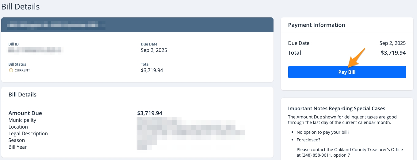 After locating your property on MIOakGov (see Add a Property on MIOakGov), you can complete your payment by following the steps below: