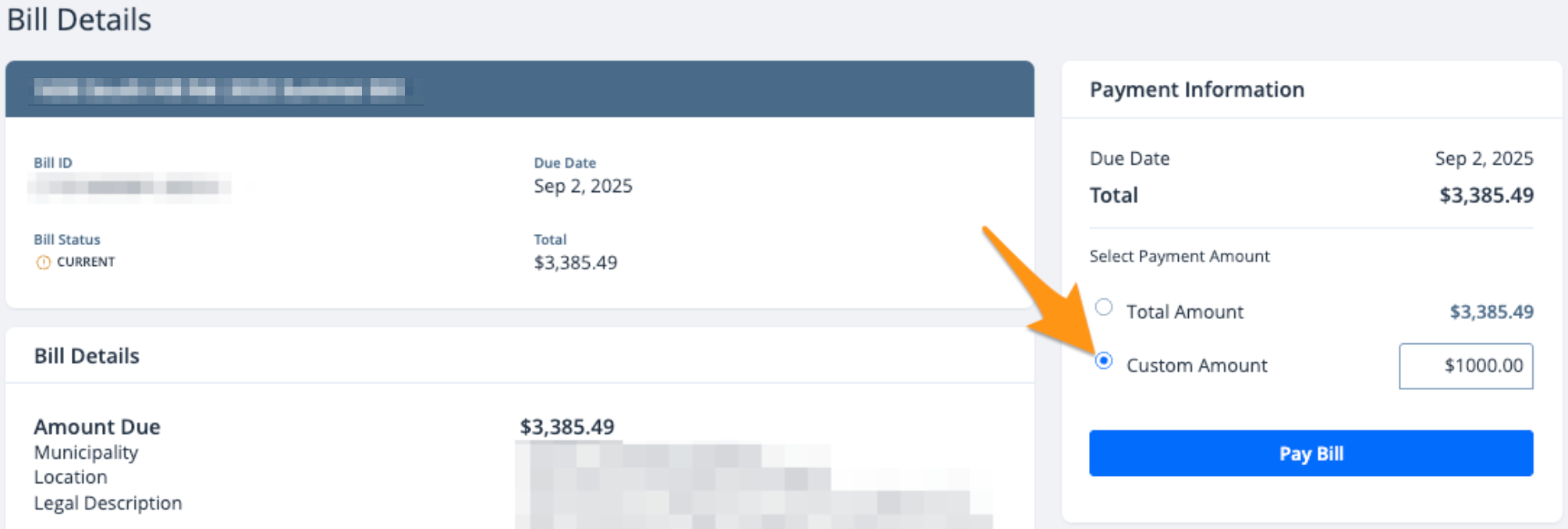 Don’t see the Custom Amount field? Partial payment availability is determined by you municipality, but you can still pay your full bill in a few easy steps.