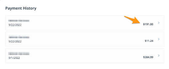 3. In the "Payment History" section select a receipt to view more information